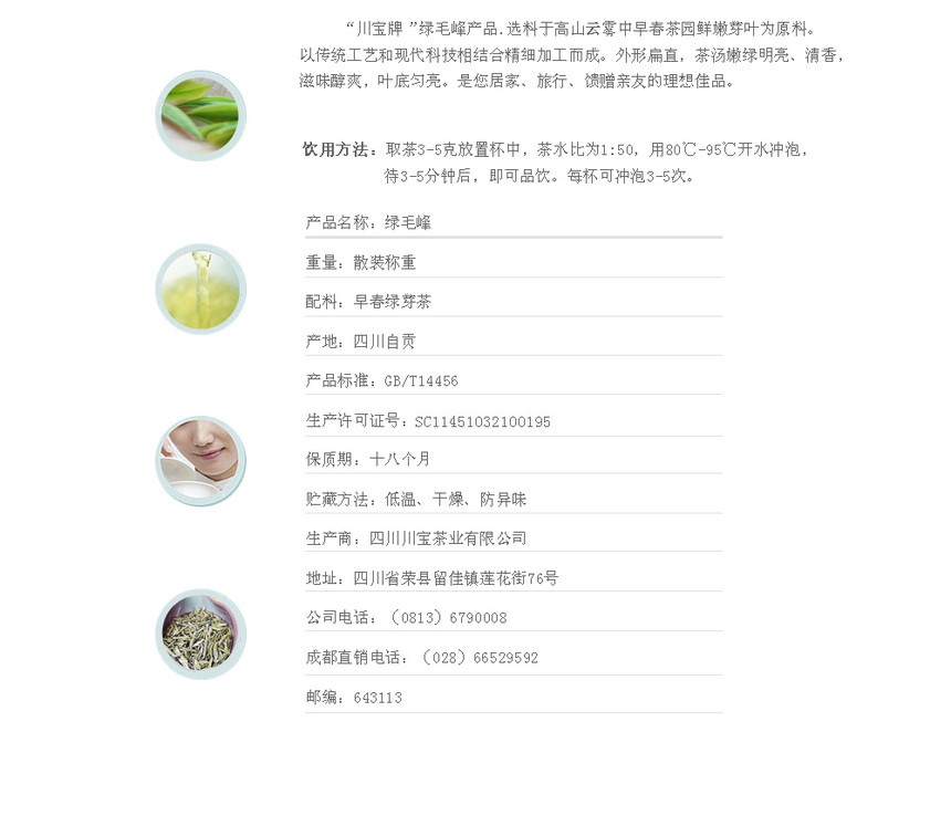 “川宝”牌毛尖高档绿茶,外形扁直、茶汤嫩绿明亮、栗香馥郁、滋味鲜嫩醇爽、茶叶均亮,是您居家、旅行、馈赠亲友的理想佳品。每份散装毛尖为500g,需多买请选择数量