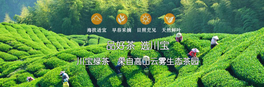“川宝”牌系列花茶产品选料于高山云雾生态茶园中优质早春鲜嫩芽茶叶为原料,以独特工艺细制、配料、以优质茉莉鲜花窨制而成,外形秀丽显毫、匀整,汤色黄绿明亮,滋味鲜爽,是您居家、旅行、馈赠亲友的理想佳品